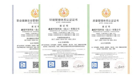 (鑫藍環(huán)保職業(yè)健康安全管理體系認證證書、環(huán)境管理體系認證證書、質量管理體系認證證書)